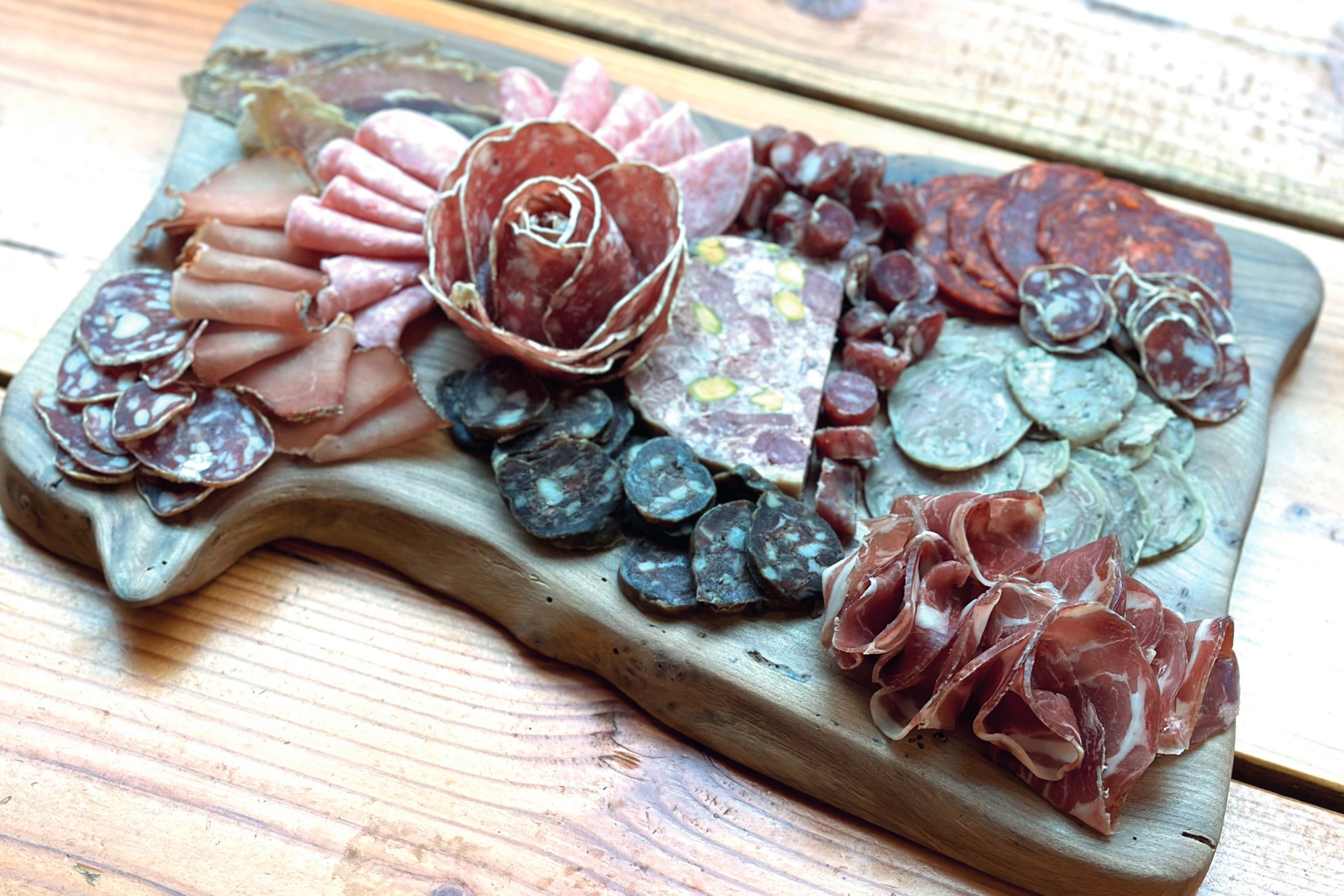 Les deux copains de Fromagement Vôtre se lancent un nouveau défi ! Fromagers de formation, ils appliquent la même philosophie à leur travail de charcutiers. Avec La Truffe et l’Andouille, ils proposent une gamme de produits authentiques, inspirés des quatre coins de la France : du Pays-Basque à l’Alsace, en passant par la Savoie, le pays lyonnais et bien sûr l’Auvergne et l’Aveyron où sont leurs racines. La charcuterie se complète d’une épicerie fine qui fait la part belle à la truffe. Sur place, en plus des planches, andouillettes et hot dogs revisités sont à la carte.